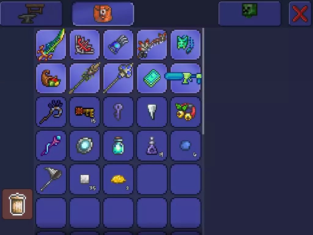 吸血飞刀,神器啊!穿着甲壳虫套装站撸所有boss根本不用骗伤,当时一直刷不出来血腥钥匙模具,我就用老妈手机4399游戏盒下载了破解版,然后和我的iPad联机,往我ipad地图上塞了一堆钥匙哈哈哈各种钥匙,那几天我开了无数张地图,在无数个地牢里开了无数个地牢宝箱哈哈哈哈哈(最近重返泰拉,发现现在开那些特殊宝箱需要打完世纪之花,才能开,现在没这么非酋啦,刚打完肉山,路过血腥之地,随手打了个小怪就掉了钥匙)