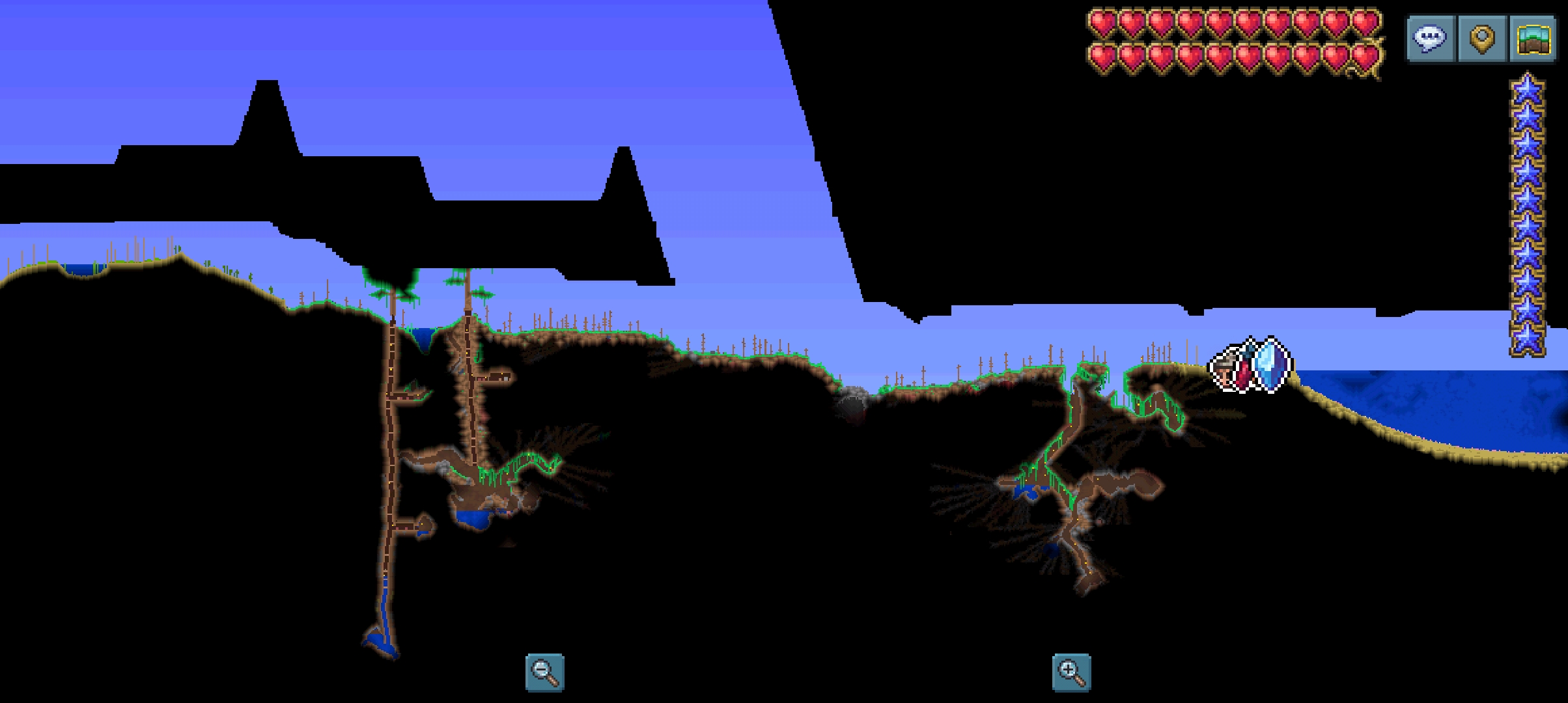 大世界右边海岸到生命树也有,不多,地表被我用泰拉瑞亚庆典种子找朋克人买的环境改造喷了一遍,地下有少量猩红石块,找起来很麻烦,一条条切块喷太费钱了,现在买的几百个溶液加枪就已经是全部资产五个铂金币了,求解