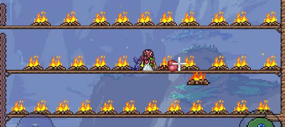 然后是道具:强,弱效治疗药水强效2瓶弱效4瓶。和炖兔兔4碗。————随后是武器,武器推荐用弓类,如果抢了猩红,腐化的夺命枪,火枪,那就用枪。还有近战范围大点的武器或悠悠球。如果有召唤物更好。——平台搭建: