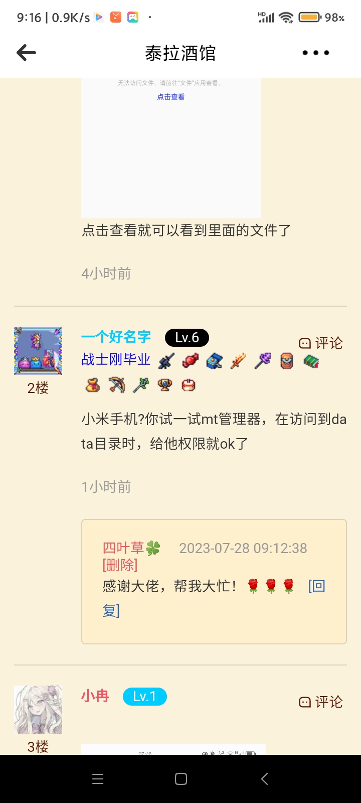 谢谢这位大佬! 四叶草 E=MC^2 他推荐的应用,帮我恢复了存档!🌹本人再此表示感谢! 评论( {{ count }})条 只看作者 {{ form.sort_type == "desc" ? "最新" : "最早" }} 简单说两句... 发表 {{ item.user_detail["nick_name"] }} {{ item.user_detail["title"] }} @{{ at_user.nick_name }} {{ parseTime(item.add_time) }} 来自 {{ item.from_region || item.user_detail["city"]||"未知" }} {{ item.user_detail['tail'] || "" }} {{ item.childs.length }} {{ item.collect_count }} {{ item.like_count }} {{ comment_child.user_detail["nick_name"] }} @{{ at_user.nick_name }} {{ parseTime(comment_child.add_time) }} 来自{{ comment_child.from_region||comment_child.user_detail['city'] || "未知" }} {{ comment_child.user_detail['tail'] || "" }} {{ comment_child.like_count }} {{ comment_child.collect_count }} [展开更多] [折叠] 📢 暂无内容 简单说两句... {{ count }} - - 🤔 ⬆️ ↪️ 回复 ⭐️ 点赞 ❤️ 收藏 ❗️ 举报 ⛔️ 删除 回复 发表 MD内容 图片 视频 表情 @馆友 发表 提到 等 {{ activeAtIds.length }}人 {{ item.title }} {{ item.nick_name }} 请输入MD格式的内容