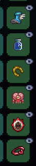 来自破晓大佬的指点:配饰可以升级一下,比如至少闪电靴(有条件泰拉靴),马掌换成马掌气球(有条件升级成马掌气球束),如果玩射手迷你鲨需要搭配鲨牙毒刺项链海啸瓶也可以升级成鲨鱼龙气球