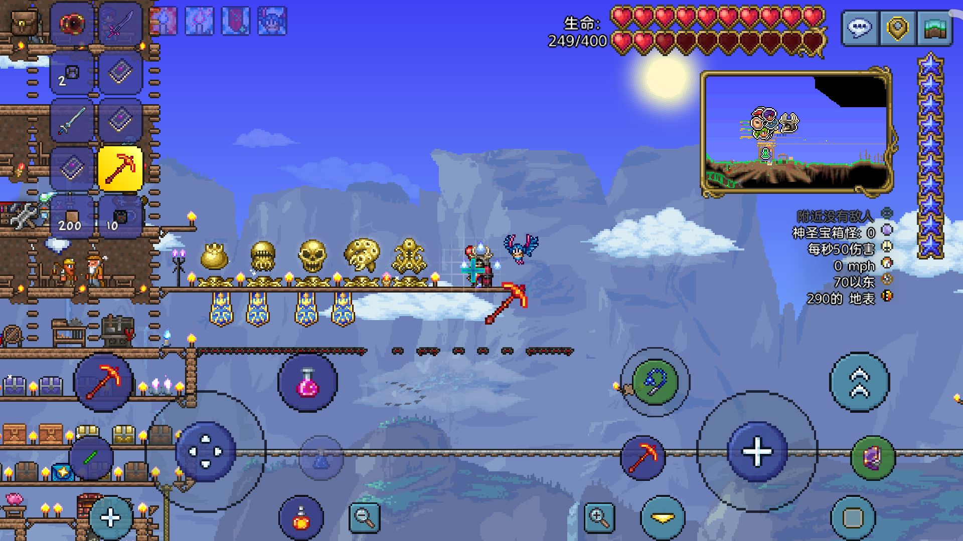 我逃课的技术是依靠滚石雕像产出的滚石来不断攻击肉山,最终打败肉山。(这里值得一提的是,滚石的伤害在不同难度里面好像不一样。例如,在大师模式滚石的伤害大概拥有70)