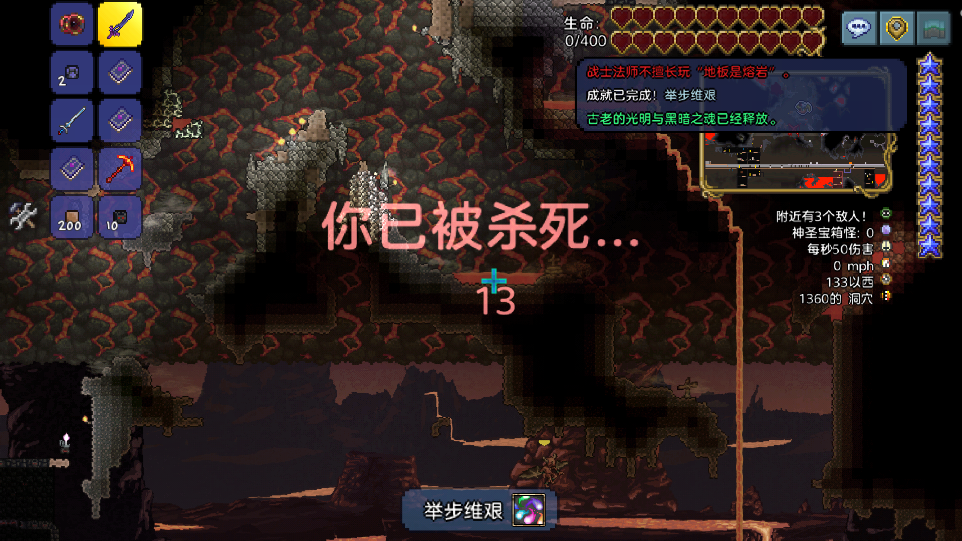 为了打肉山,我死了无数次(各种死法,千奇百怪。被龙虾夹死,被岩浆烫死,在打肉山时被滚石滚死等等让人简直太难受了(╥﹏╥) )