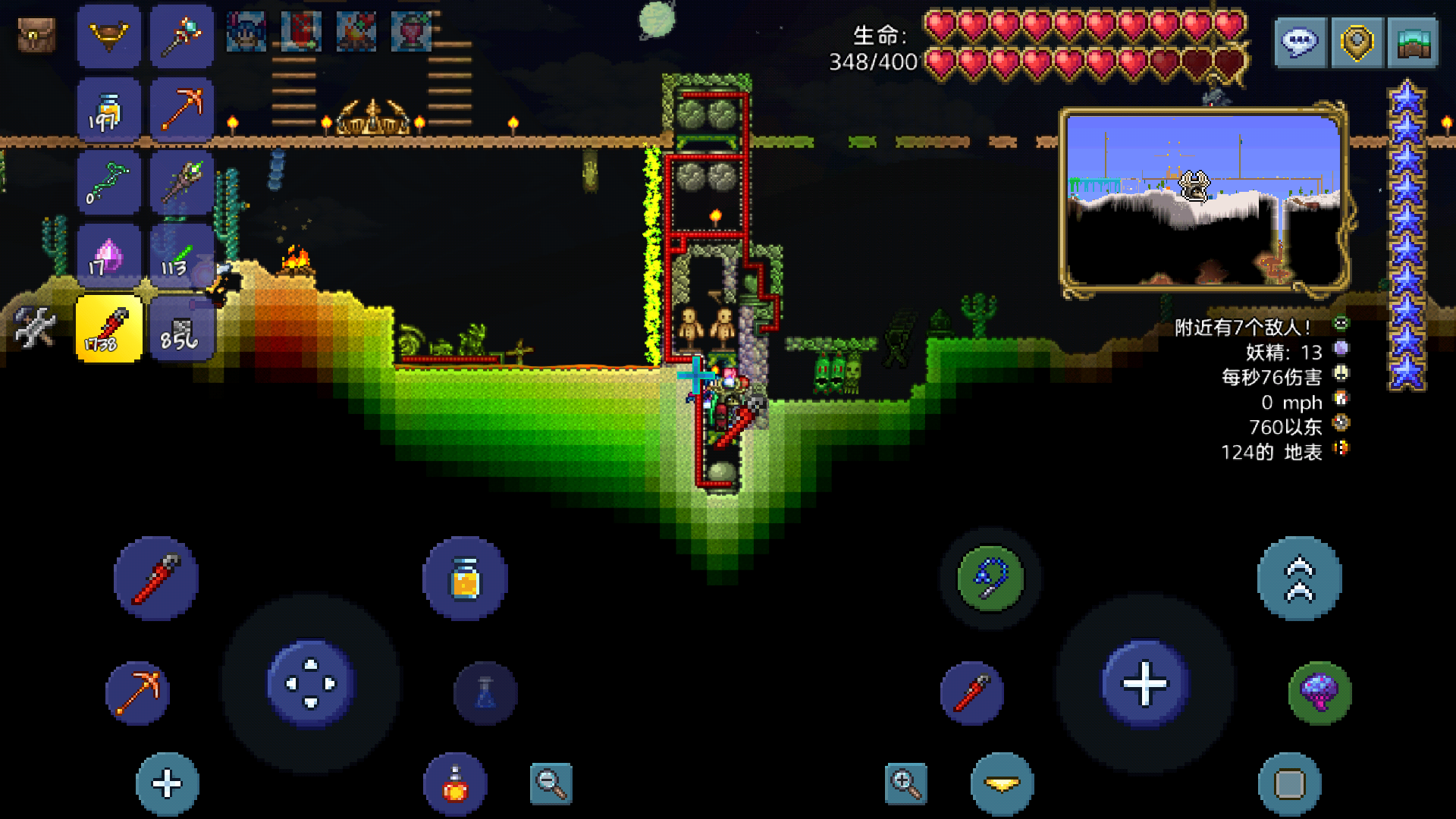 建筑:搭建一个如上图的能让史莱姆坐骑反复弹跳的装置详细请看本系列第一帖《不拿任何武器包括召唤兽打BOSS》