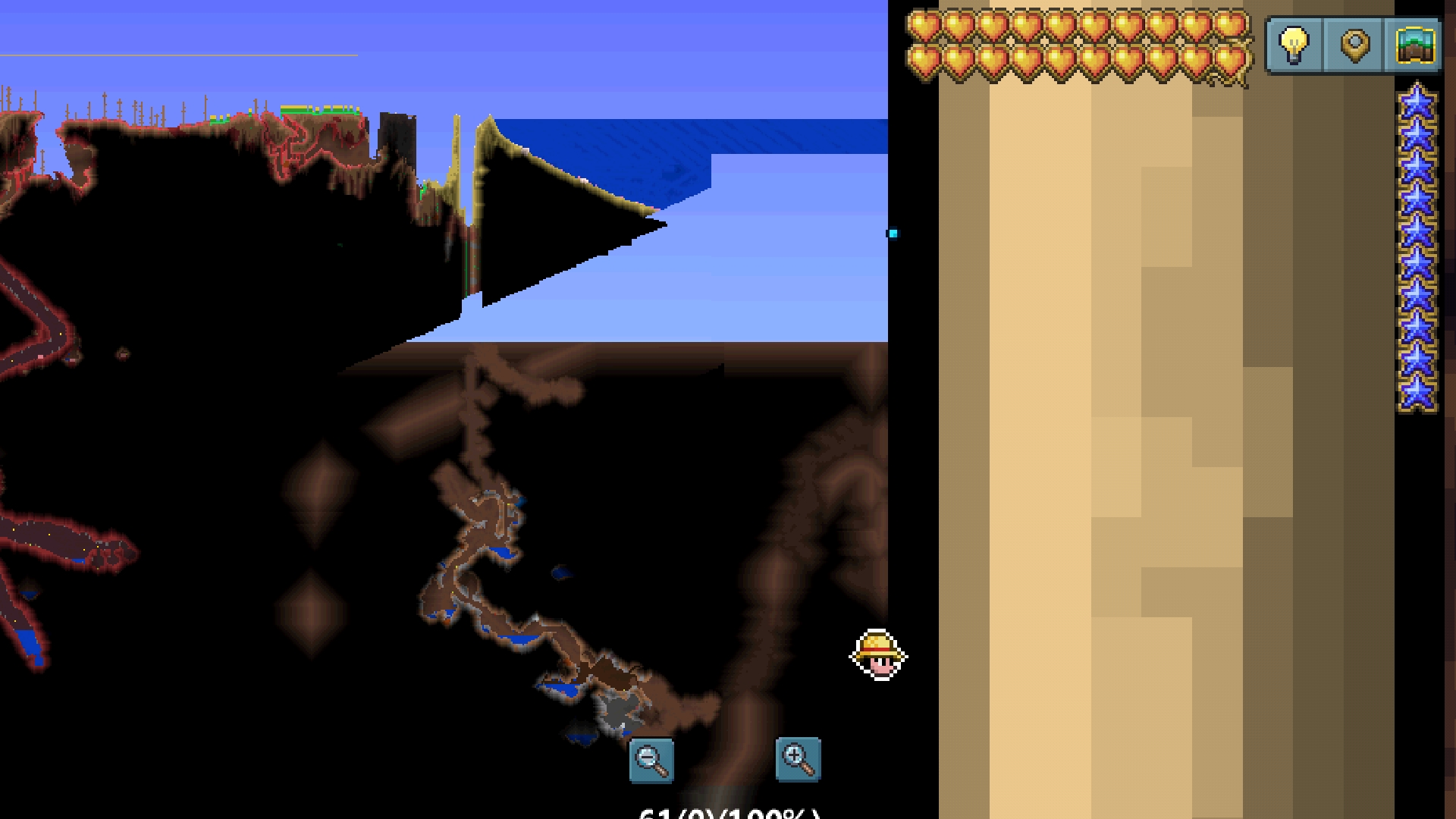 进来一看首先NPC全都没了,本来城镇,现在在刷怪。我也就愣了五分钟,想着就可能昨天玩的时候存档没存好,没npc就没吧还挺随和的。后来我去箱子,结果箱子和桶啊,全都变家具了,他就是里面东西没了,打不开,空的。我所有的矿和物资啊资源全都没了。用海螺一传,一边的海洋是没事的,但是最右边的地图他好像全都没加载了,就是人物周边半径60个之内的物块全都消失,全都变虚空了。我现在想的这图算报废了,玩了110+小时了,本来昨天刚合完泰拉刃挺开心的,现在回世界一看就全无了。