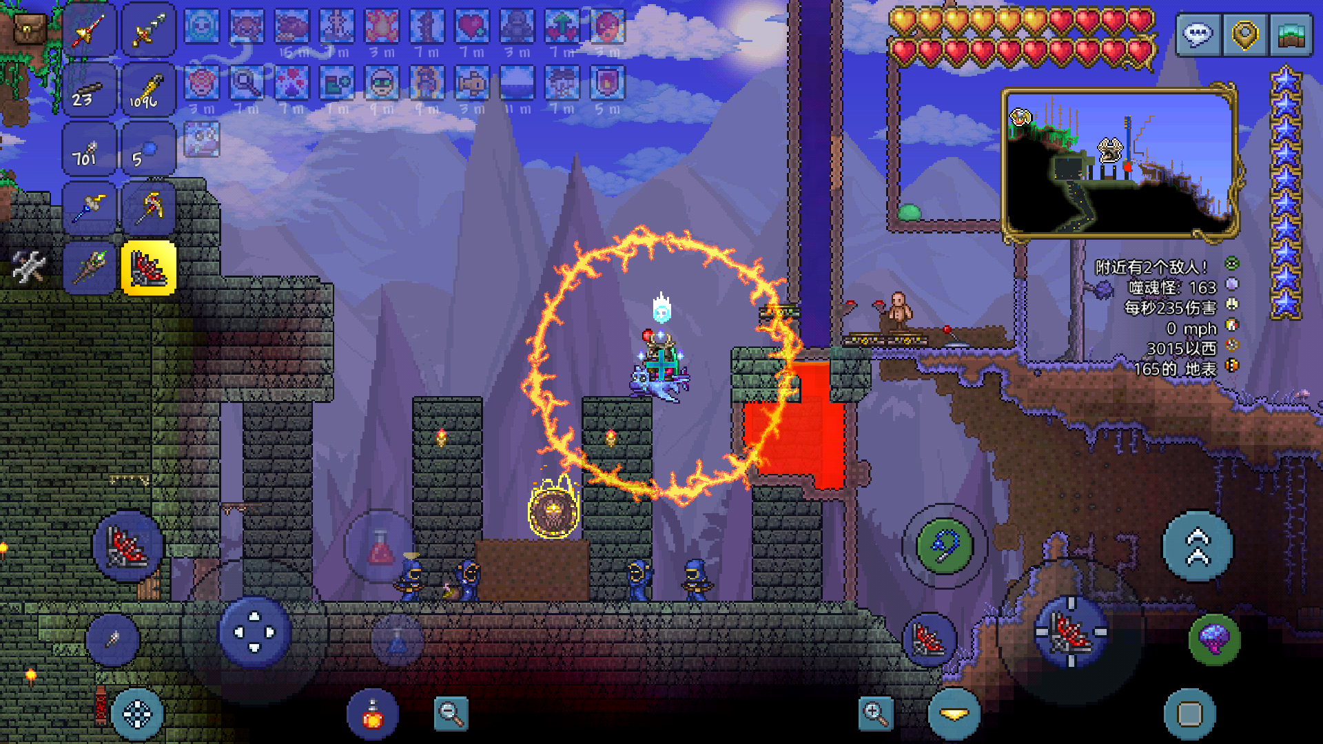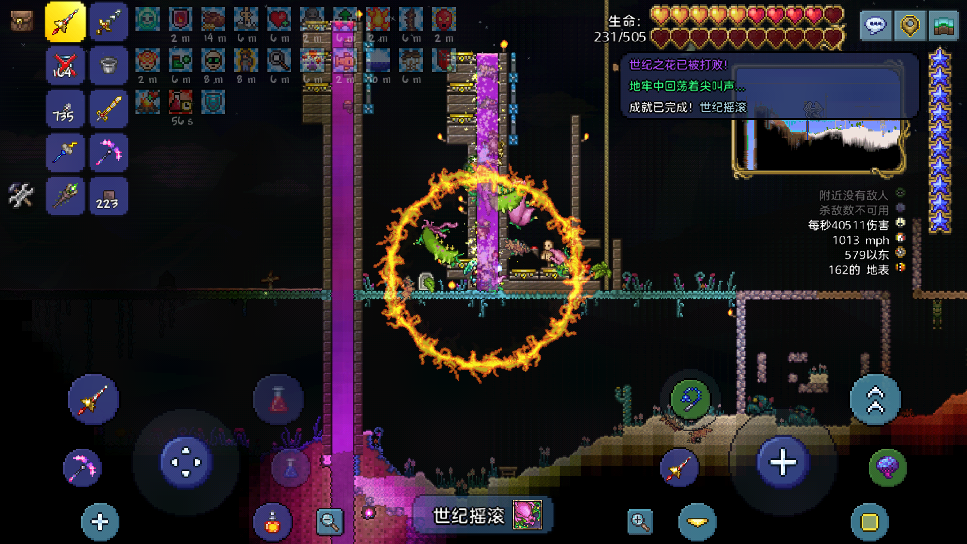 (打的还算快,一两分钟就结束了。这个主要靠嗑药,吸血鬼刀和飞行坐骑或者铁轨就可以轻松过。)