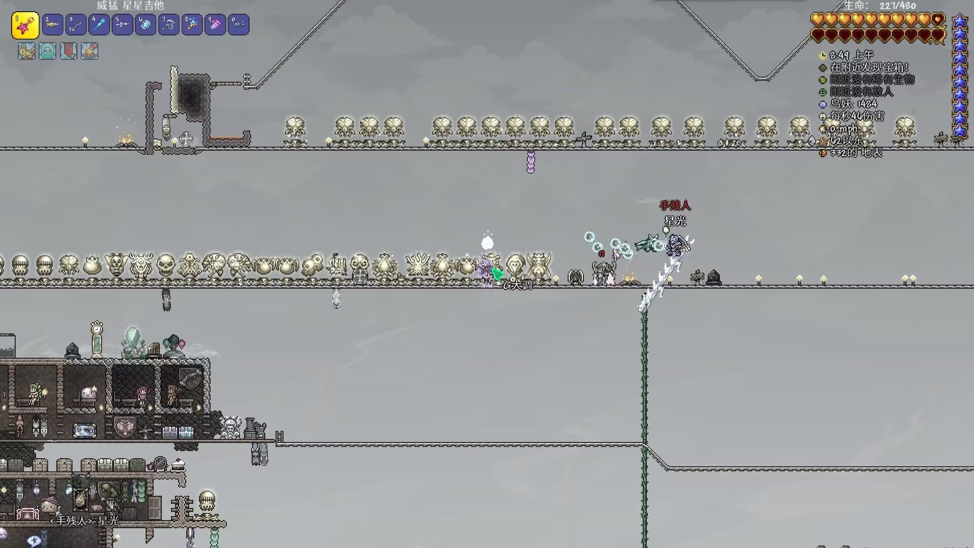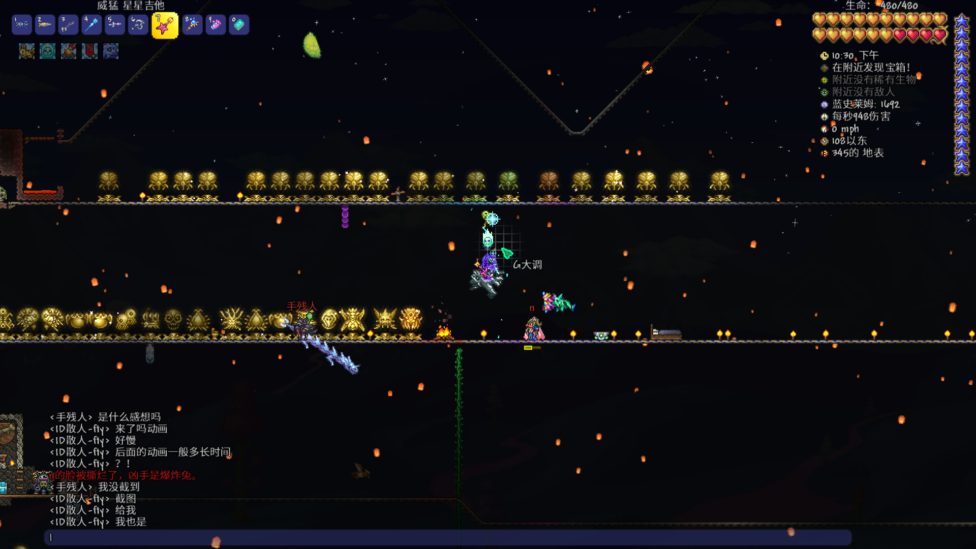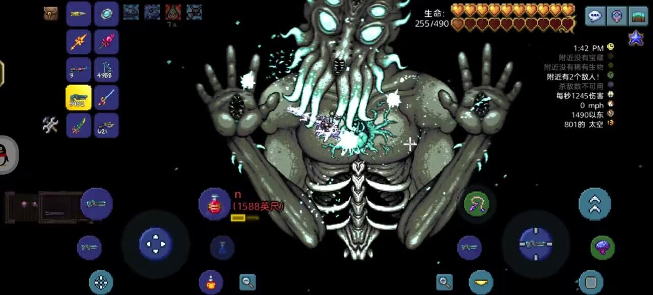 第二阶段,猪鲨移动加快,注意走位(我的意思是如果快要够到就连跳一下),克苏鲁真风往海两侧下方引,吃到旋风离开往上离开,因为有旋转的泡泡,如果有浴火药水,就没事了