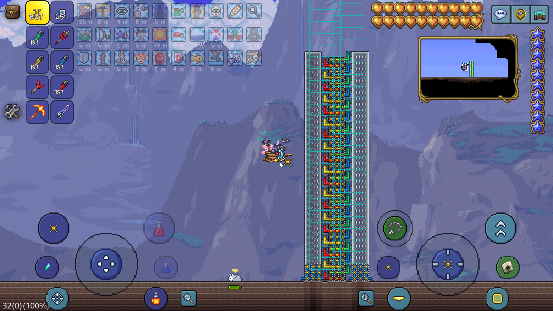 步骤二:放好逻辑感应器(玩家出入上方)后,在中间柱子上放满致动器。(火把在整个装置做好之后再放)
