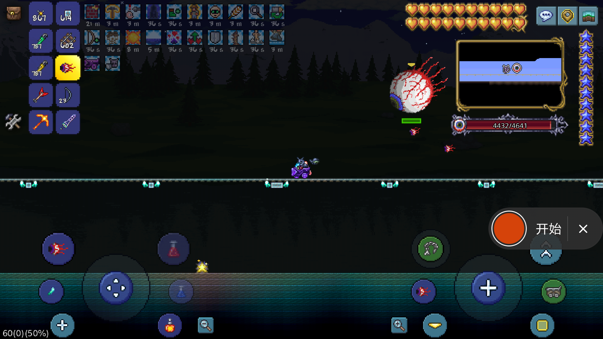 场地:搭三层平台,每层平台500个格长,每层平台间有20格宽,最后记得插上火把。(若是再吃上羽落药水,平台间隔可以更大)