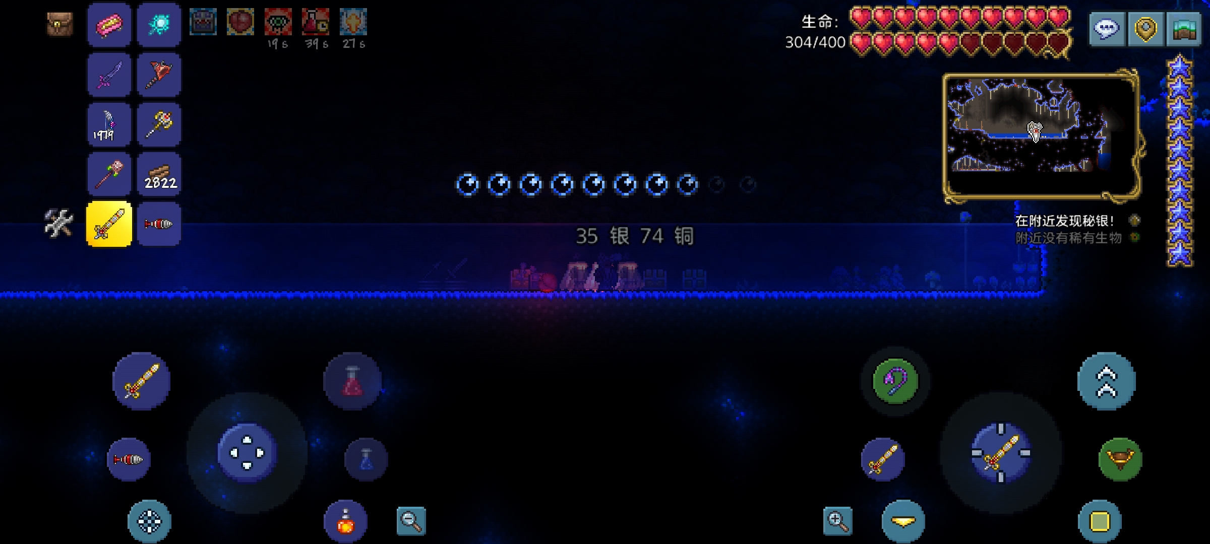 直到砍了一两颗树,史莱姆从天而降。(原地去世,用铜短剑和史莱姆搏斗许久)