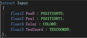 它有以上格式,我们根据我们需要的顶点信息,三个元素分别选择Vector2和Color和Vector2(或者Vector3)就行了。