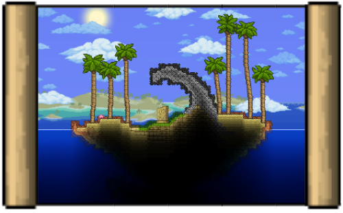 椰子岛是一个在世界创造时生成的小建筑,位于海洋中,表面有一个奇怪的方尖碑,下面埋着一个旧箱子。