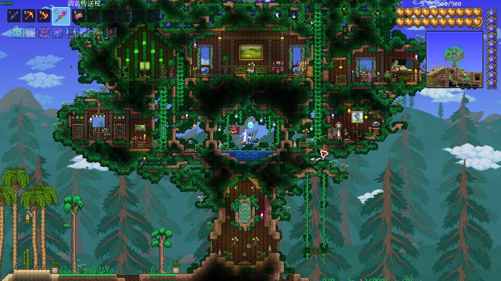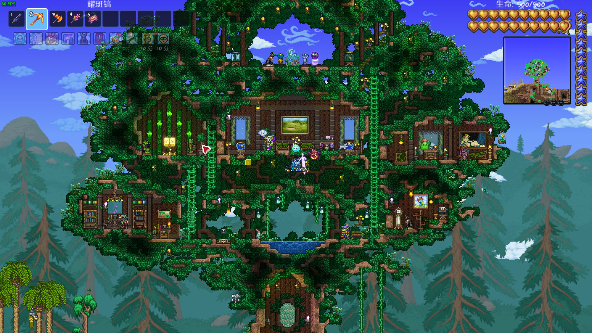 三棵生命树腻歪在一起实在太难看了,索性直接全挖了重新造一棵,感谢B站崖无端的作品,不过说实话复刻起来真挺难的。