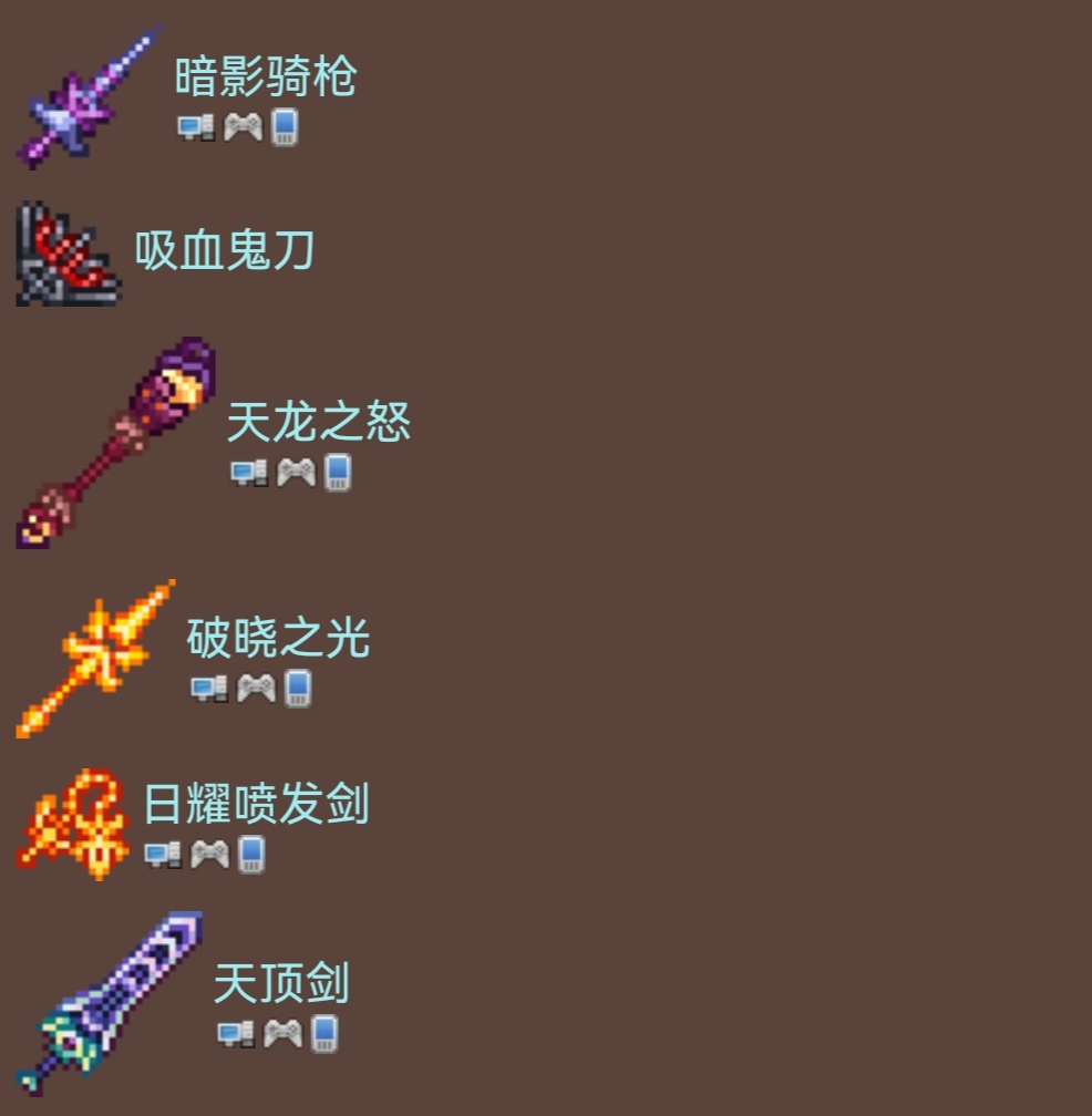那么以上就是泰拉瑞亚中所有的武器分类了,如果各位有任何指正、补充或建议欢迎提出。本篇到此结束,下次见~
