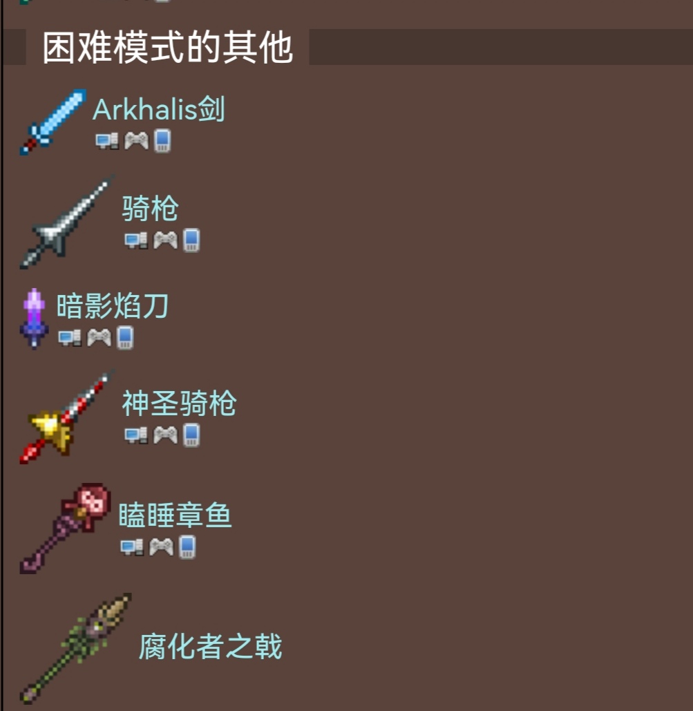 目前在泰拉瑞亚中一共有19种不同的矛可用,其中13种是困难模式独有的。