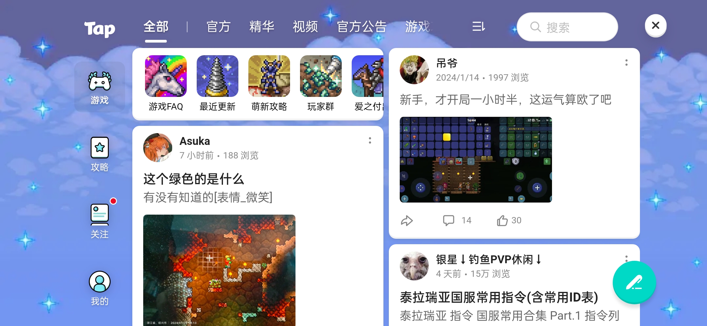 今天体验了一下泰拉瑞亚国服,因为要和朋友联机才忍痛花下18块。打开后就是登陆和实名认证,我问朋友怎么联机,他说要加好友进房间,右上角展开有好友,动态,组队,地图下载,公告,加了好友后我看了一下动态,打开时候是个论坛