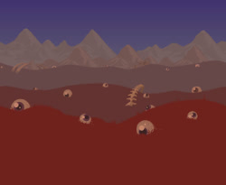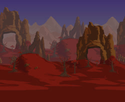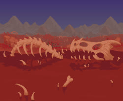 带有龙骨架的血腥湖泊,处于一片长有很多猩红树和更多龙骨架的猩红平原中。