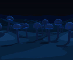 长在山丘地景上的小型发光蘑菇。有不同的草地颜色。