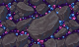 在紫色背景上挡住了蓝色、粉色水晶的大石块。