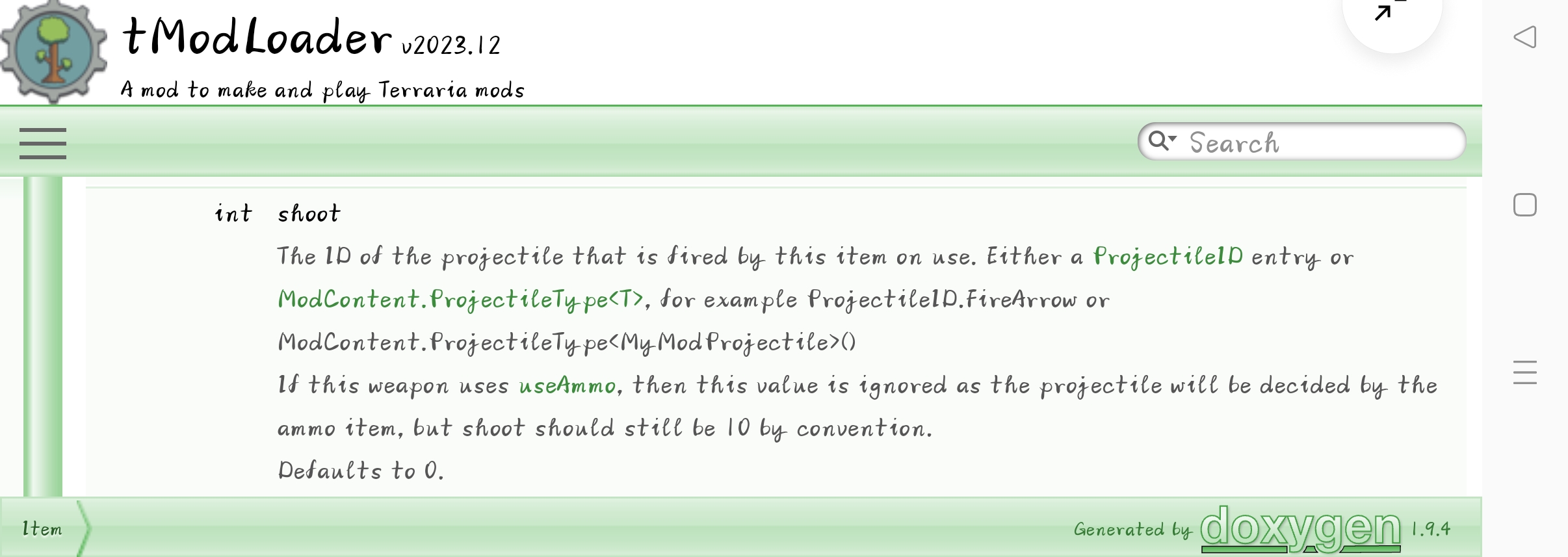 此物品在使用时发射的炮弹的ID。ProjectleID条目或ModContent。ProjectileType<T>,例如ProjectileID。FireArrow或ModContent。ProjectileType<MyModProjectile>()