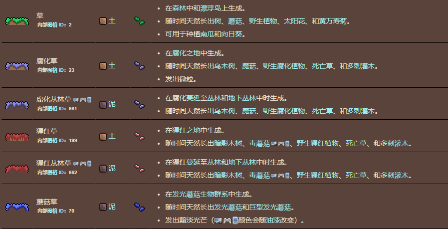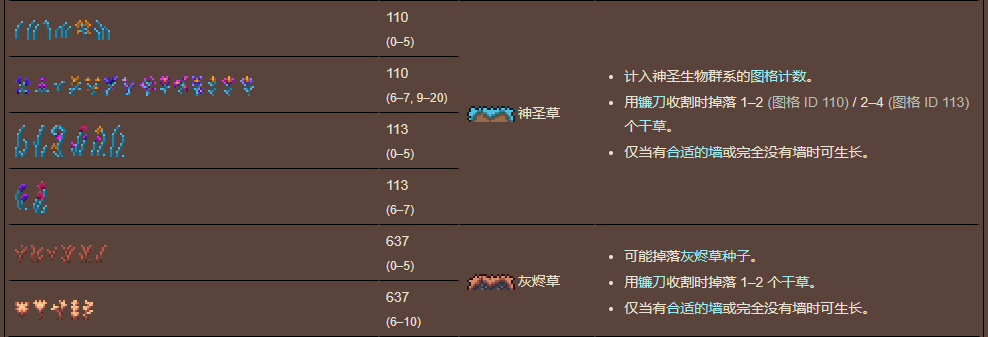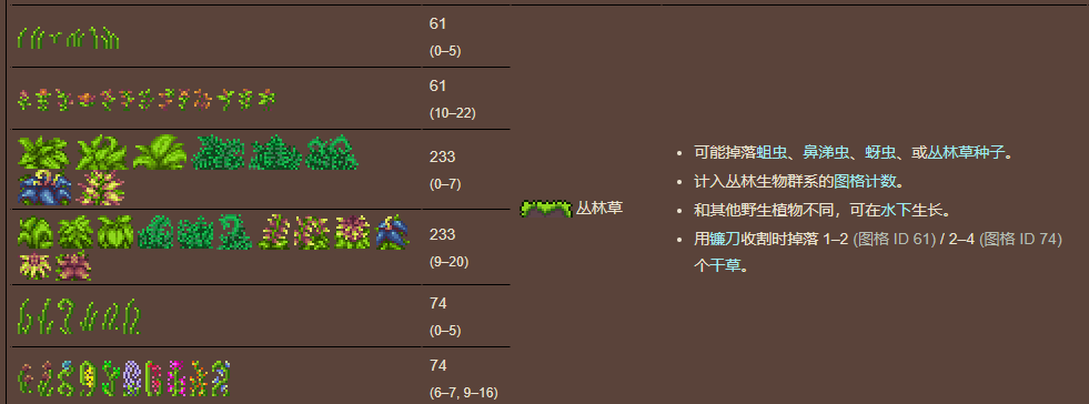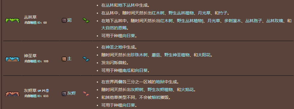 紫色和红色的种类会蔓延腐化/猩红;但是棕色的种类不会蔓延丛林草。
