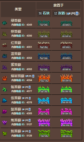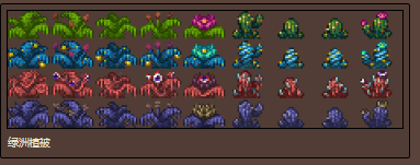 使用此页面查找植物主题装饰的玩家应当注意,有若干种墙、物块\和家具物品拥有基于植物的主题,可用于装饰用途。