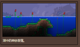香蒲是在淹没于水下 1-7 格深的物块上自然生长出来的植物。它们是背景物体,可以用绝大多数武器或工具摧毁,但只有发光蘑菇香蒲会产生掉落。它们最高可以长到水面之上 1 格。摧毁香蒲的某一格会同时摧毁香蒲在这一格以上的所有图格,而摧毁其底部或者其所附着的物块会完全摧毁此香蒲。