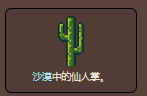 仙人掌会在沙漠 生物群系中的沙块上自然生长,且在沙漠被腐化、猩红或神圣侵染后仍然会存在。它们可以用任意斧头砍伐,可以用于制作仙人掌主题的武器、盔甲、家具,或者被放置并用作建筑材料。有时,粉仙人掌果会在仙人掌顶上生长。在 前代主机版和任天堂 版中,采掘仙人掌下方的沙块可以破坏整株植物。