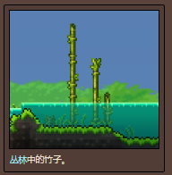 竹子是在浸没于 2-5 个物块深的水中的丛林草上自然生长的植物。它会以极其缓慢的速度竖直生长。竹子可以用镐砍倒,并用于制作家具或大竹子。