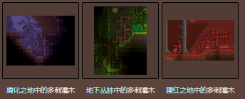 多刺灌木,或荆棘是会伤害任何接触它的玩家的植物。共有四/两种不同的多刺灌木: