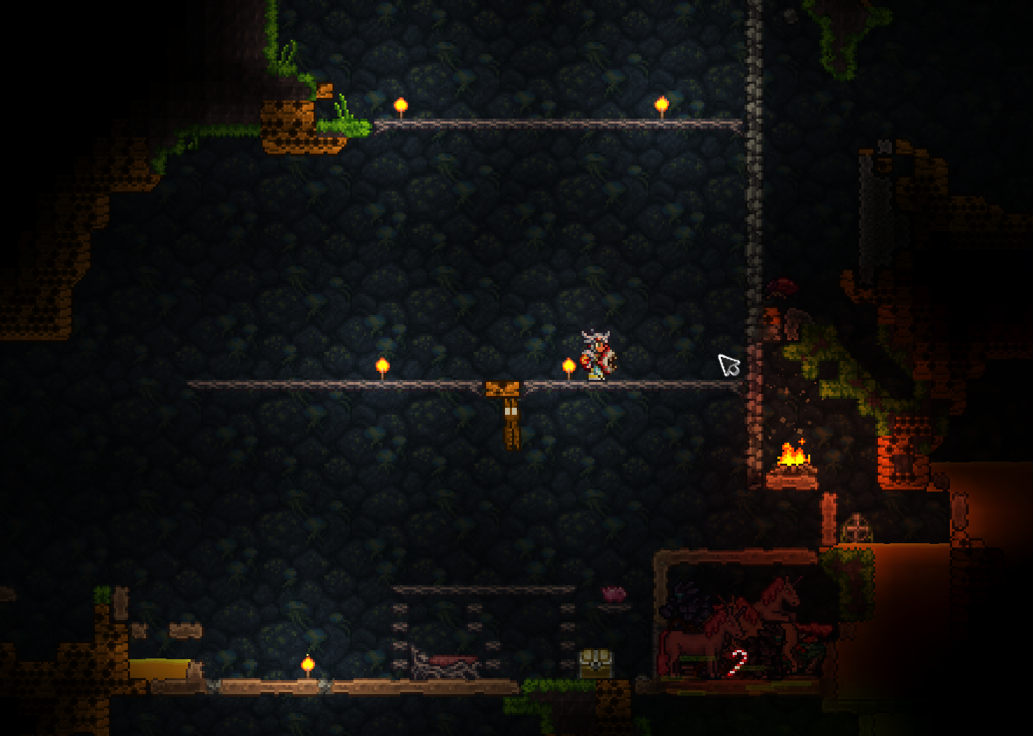 利用与克眼战斗时建造的平台,几乎可以说是对史莱姆王的单方面虐杀。不过,因为史莱姆对中毒效果免疫,这次草剑倒是没有以往发挥好了。如果是真近战,或许可以尝试一下养蜂人/血腥屠刀?