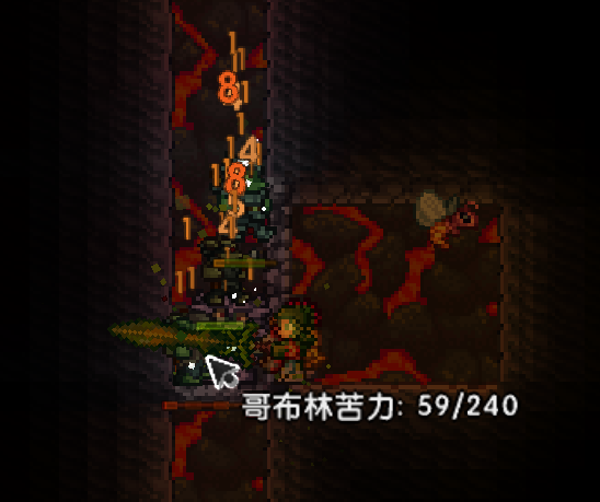 在出生点附近向下挖一段距离(千万不要太深),利用单向墙特性可以做出一个刷怪房间——如此这般,只需要注意哥布林法师放出的混沌球就可以无伤通过哥布林事件了。