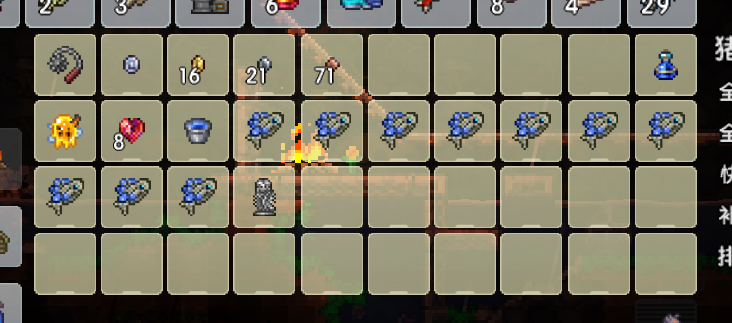 当然,这个方法在防御不够的时候容错较低,建议多制作一些召唤物备用,并准备一个小型的与蜂王周旋的平台。
