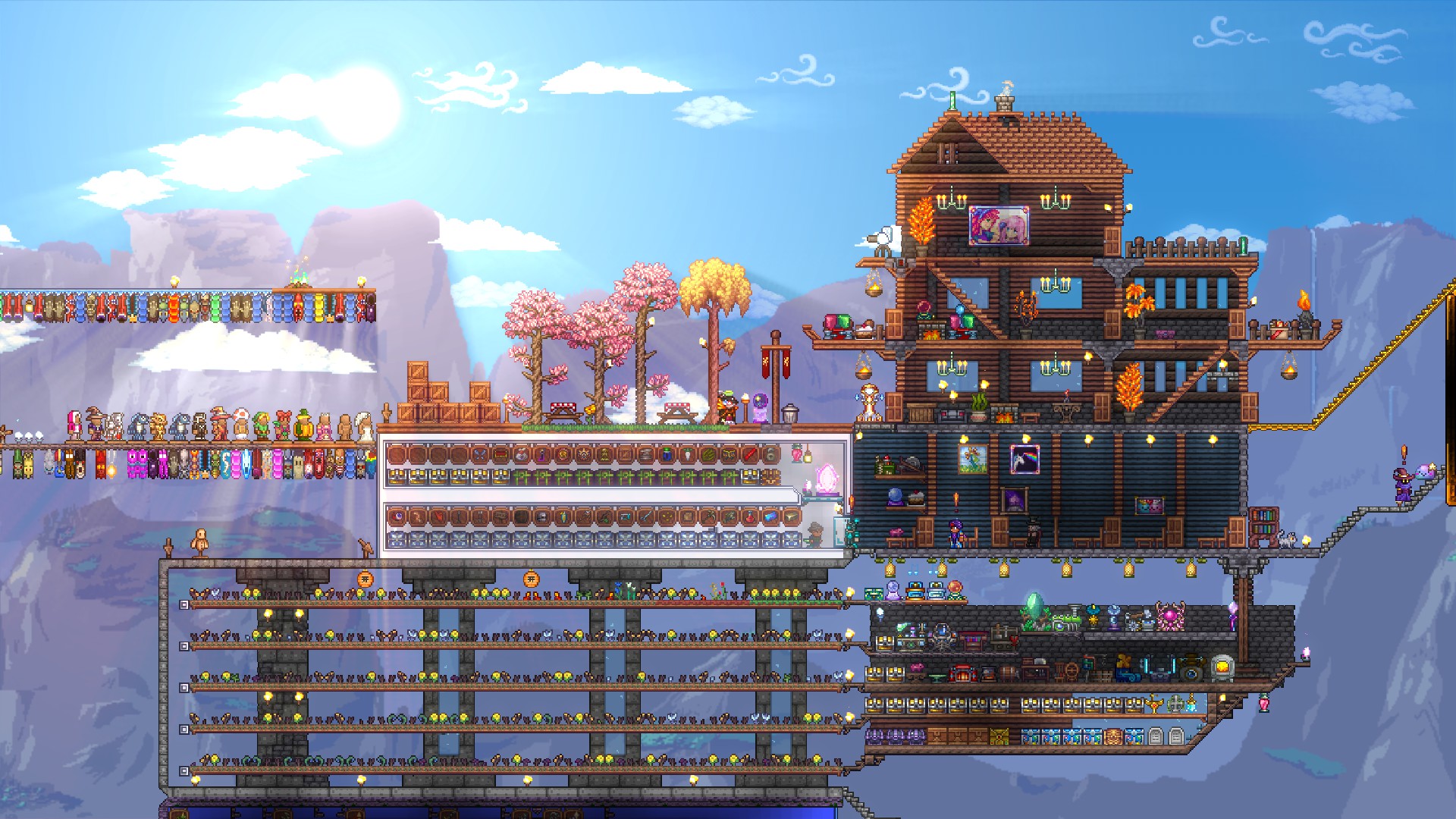 *把那边那些墙拆一下,这边搭上平台,顺便把增益站什么的都放上,这个地牢浮岛有点碍事了啊,给它改装一下