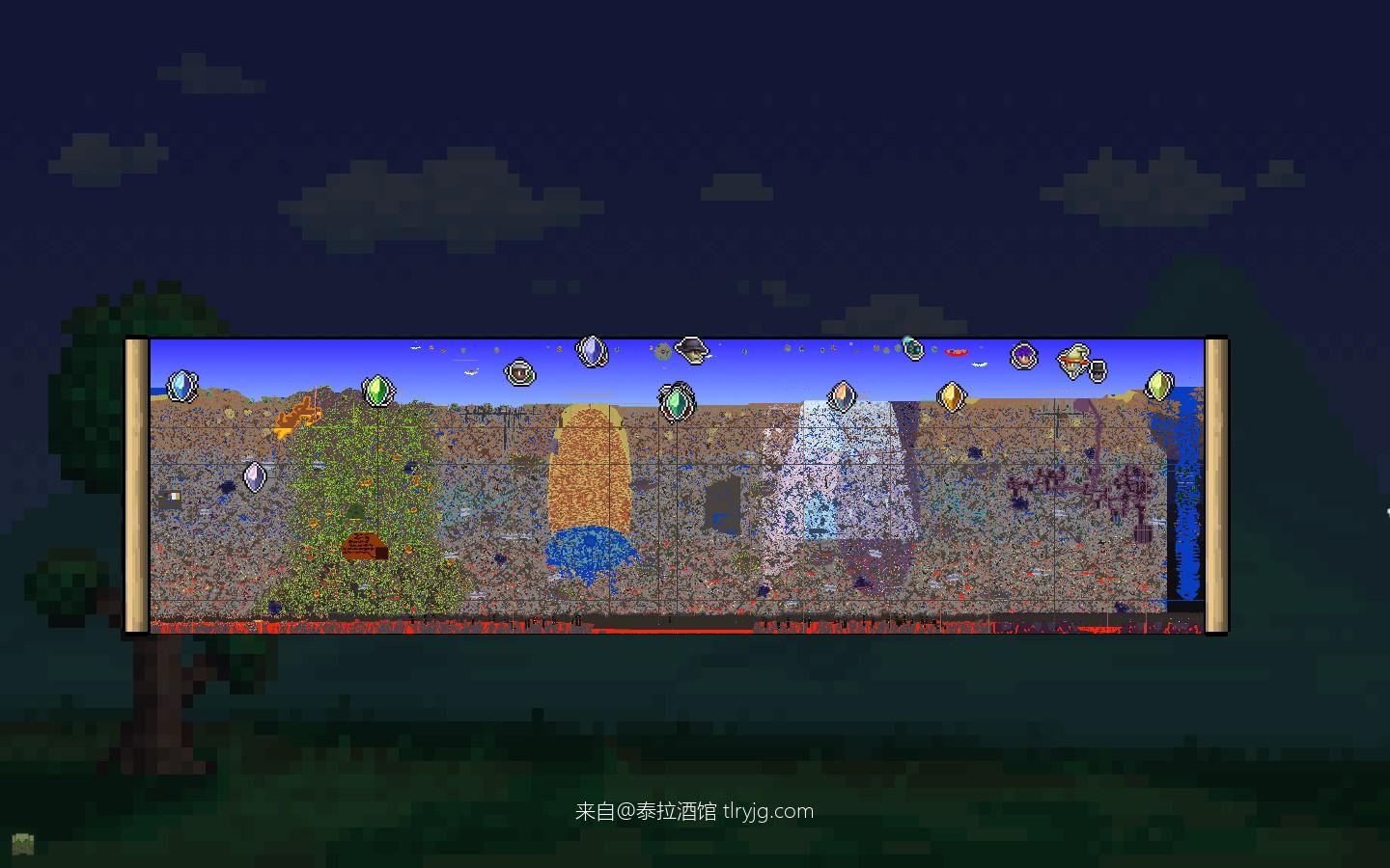应该是懒人mod里的吧?有个工具能点亮地图,不过范围不大,加上另一个npc月总后出售的无限传送,把地图全部点亮了,就是有点久